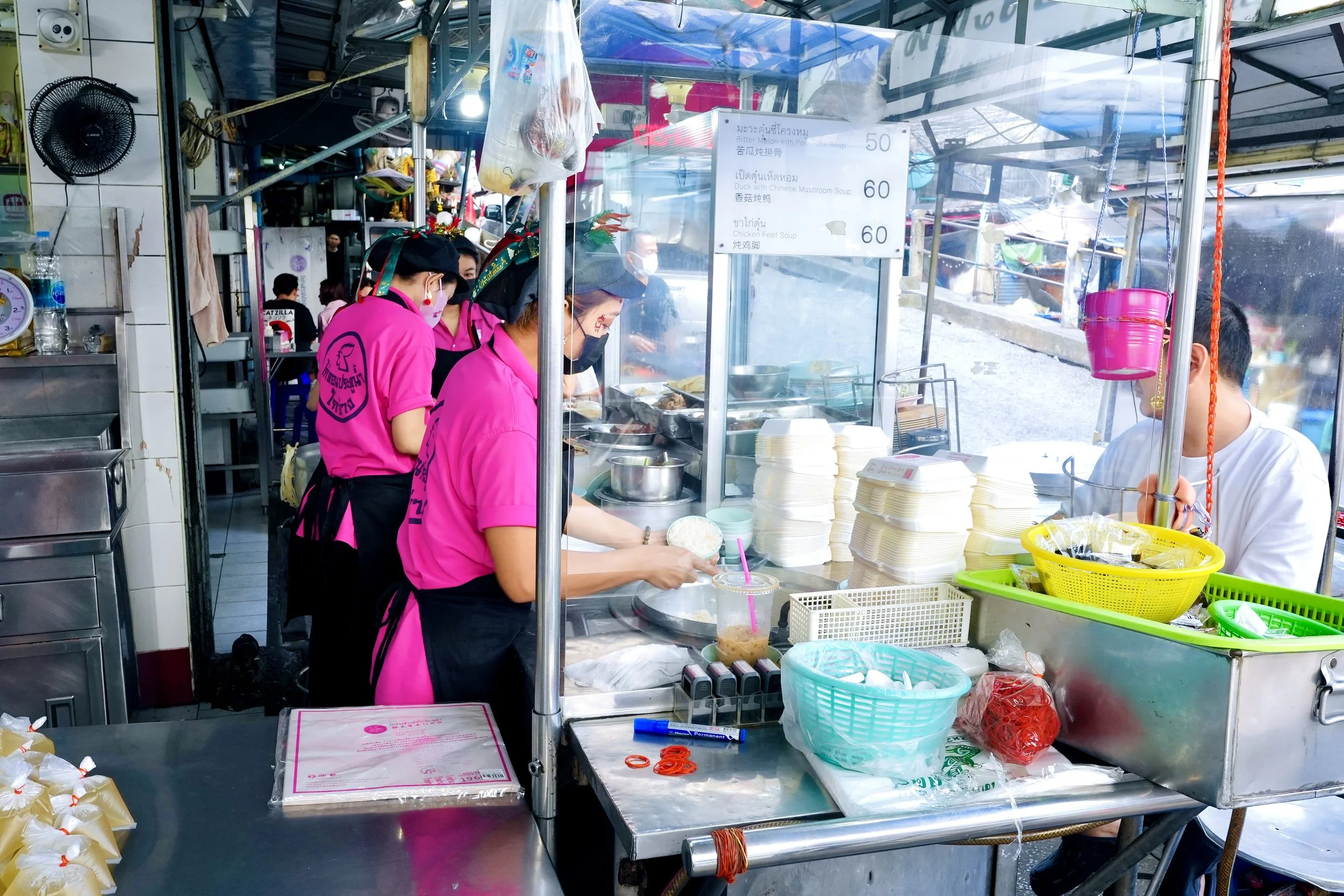 It’s one thing to eat Bangkok’s famous chicken rice. It’s another to eat it at Go-Ang — a place that feels like it’s running on pure momentum. The metal tables are always full, the air buzzing with clinking spoons, quick footsteps, and the soft thud of cleavers hitting chopping boards. Nothing here stands still. Not the servers, not the steam, not even your plate for long.