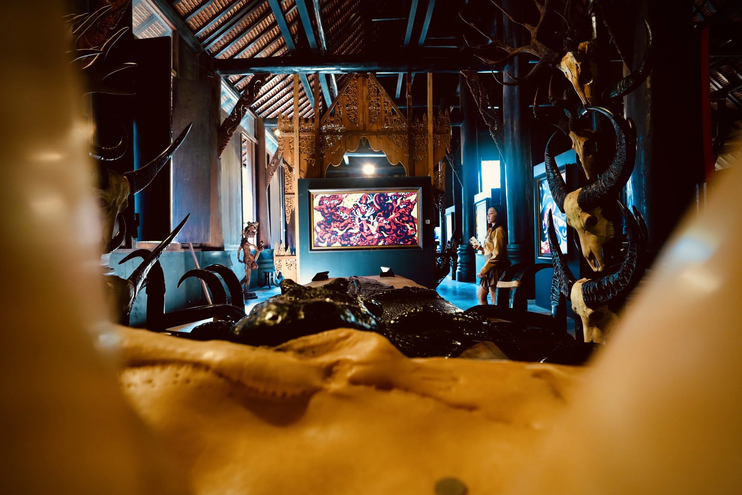 After days of temples and flowers, Baan Dam felt like a deliberate shift. Where Chiang Rai often moves quietly and openly, this place turns inward. Space compresses. Color drains away. The air feels heavier — not oppressive, but intentional.