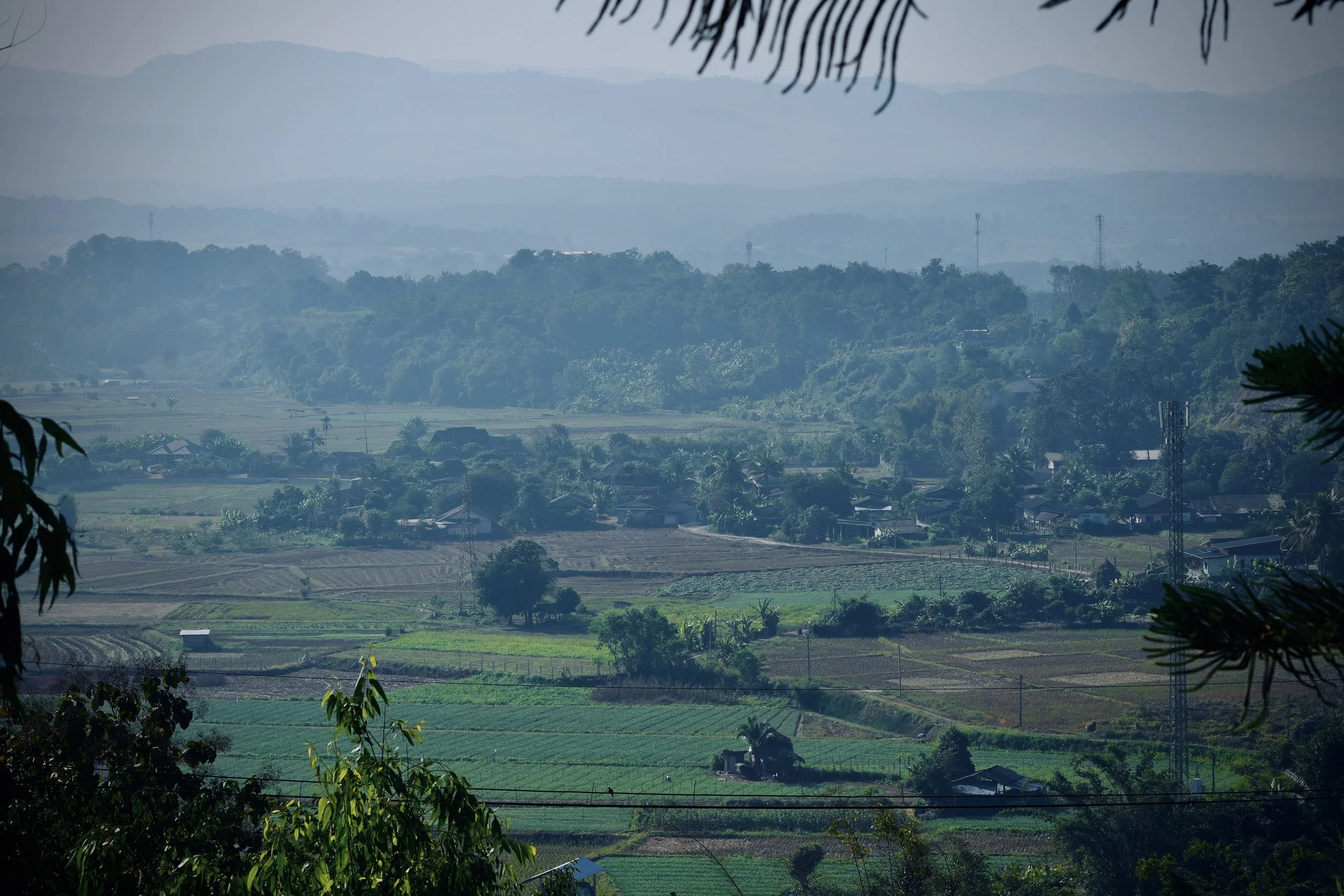 From higher ground, the valley becomes legible. You can trace irrigation lines. Roads. Rivers bending gently through farmland. Chiang Rai’s economy depends heavily on agriculture, with rice remaining a staple crop. Seasonal cycles dictate everything — planting, harvest, movement.