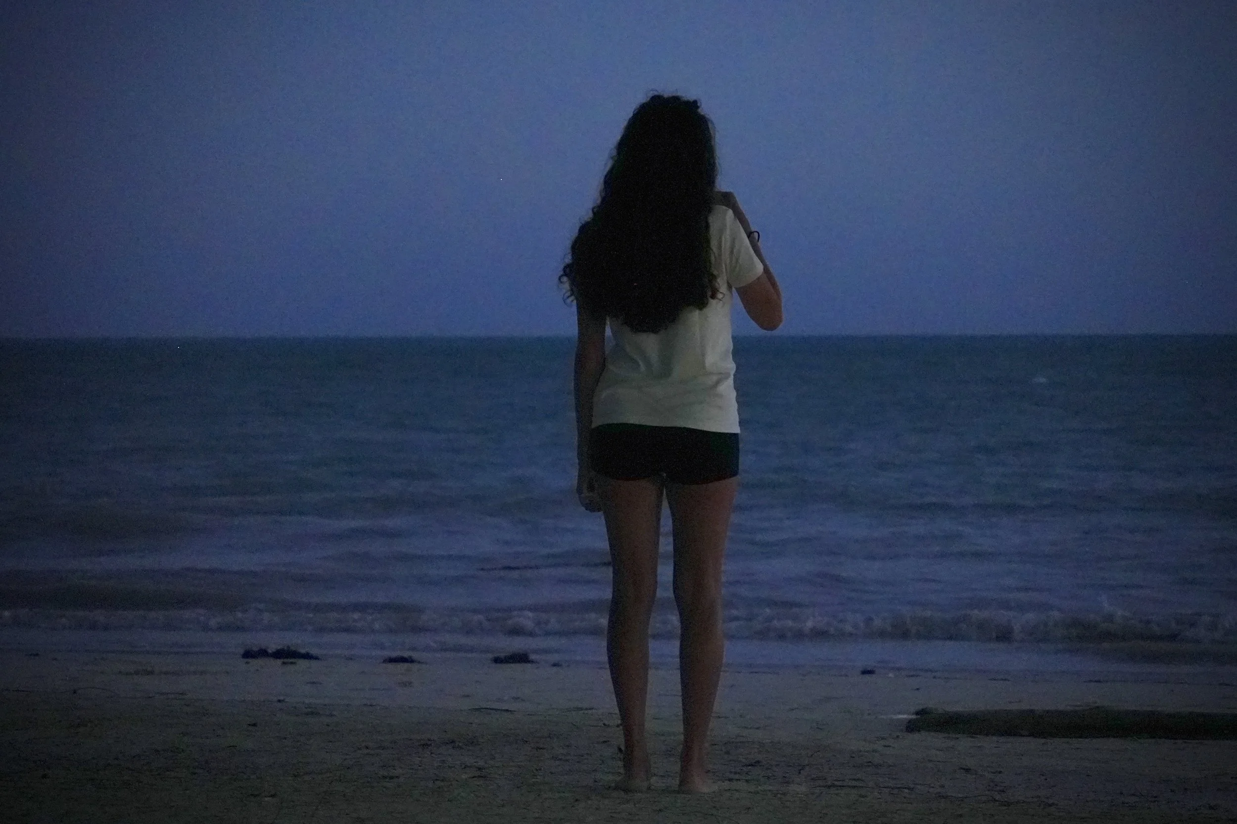 A quiet minute to myself. The sky folds into soft orange and blue as the water mirrors the light. The sound of waves becomes a kind of meditation — the world reduced to its simplest rhythm: breath, tide, stillness.