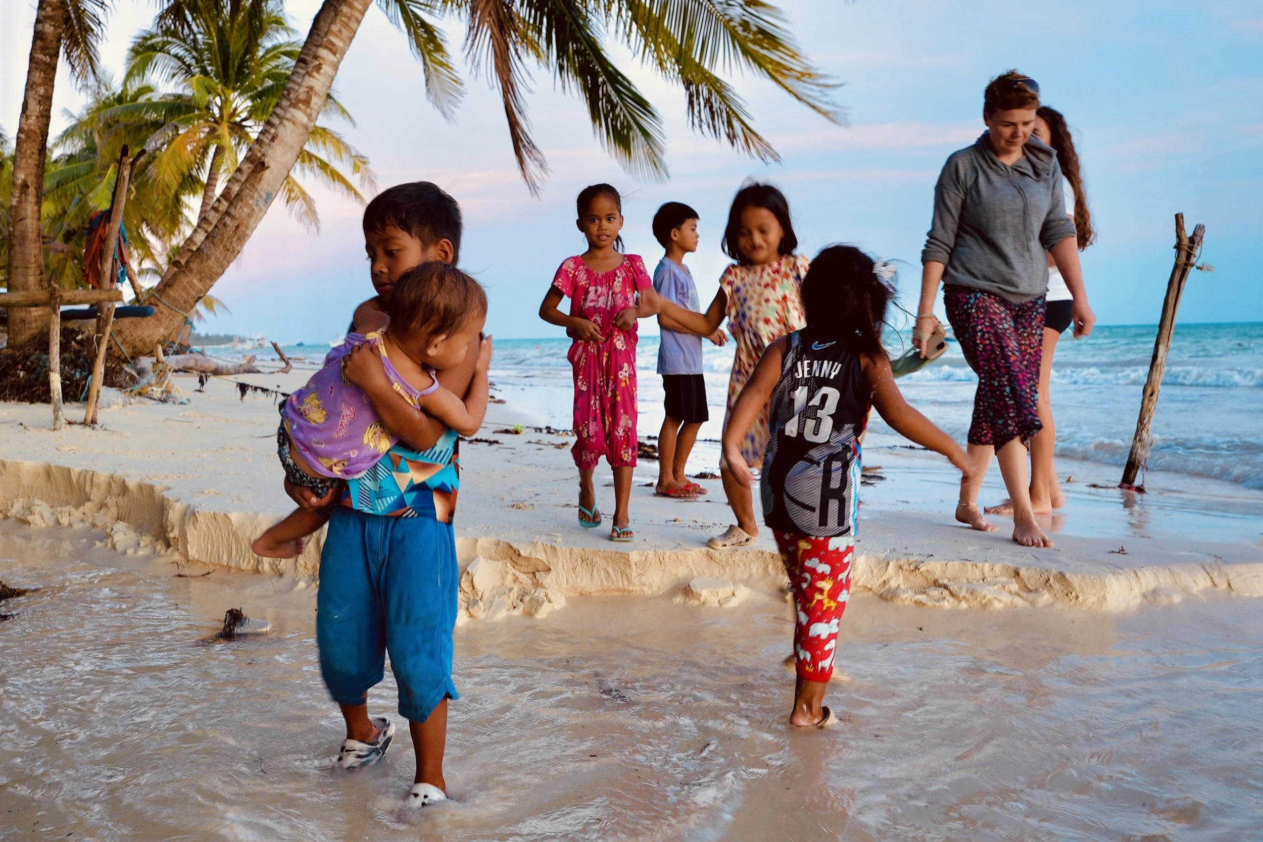 By late afternoon, the light turns honey-gold. The local children appear — barefoot, salt-skinned, alive with laughter. They run through the shallows, daring the waves to catch them, as though the ocean were an old friend who never quite wins the game. Their joy is unselfconscious and pure, the kind that reminds you how much of life can exist outside of time.