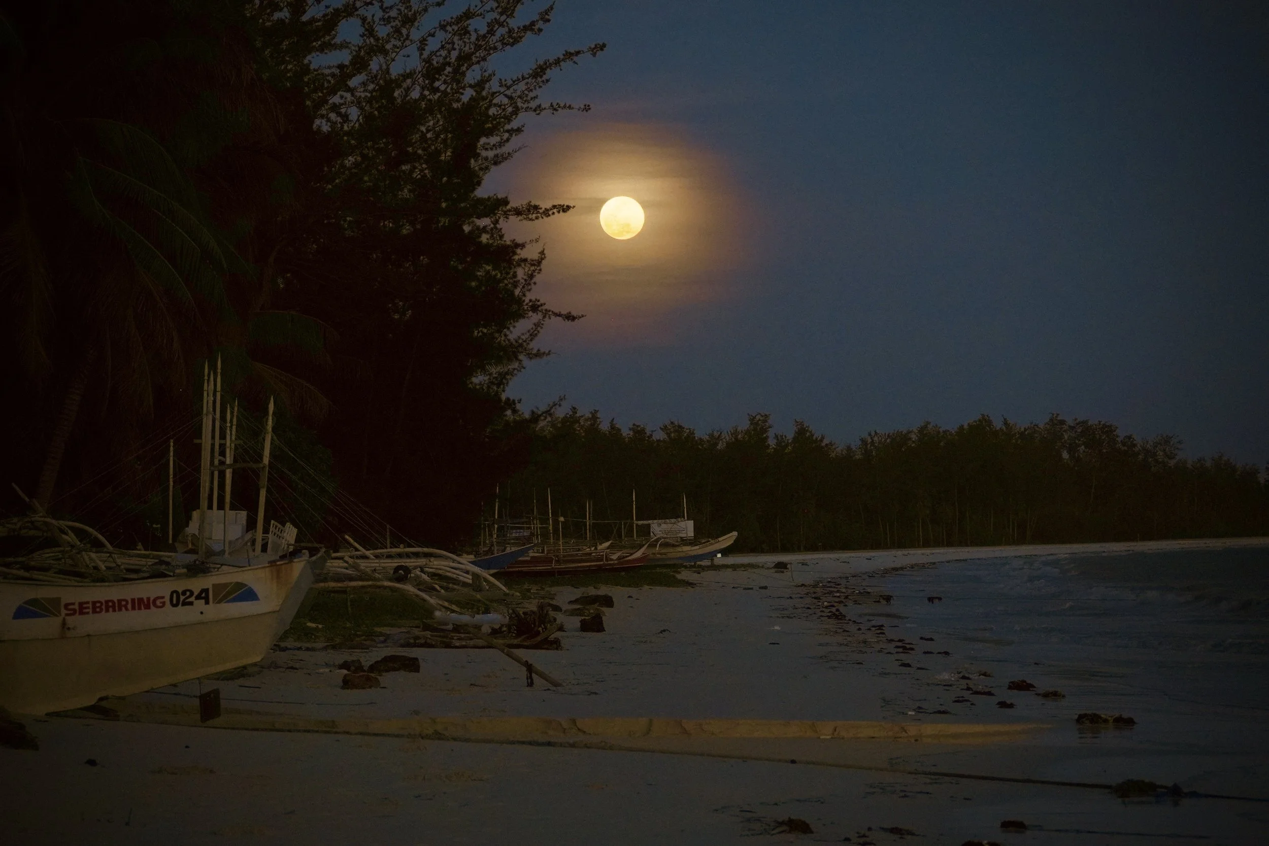 The moon climbs slow and silver. The sand turns to glass. In that light, everything softens — the huts, the palms, the faces around me — as if the island itself exhales.