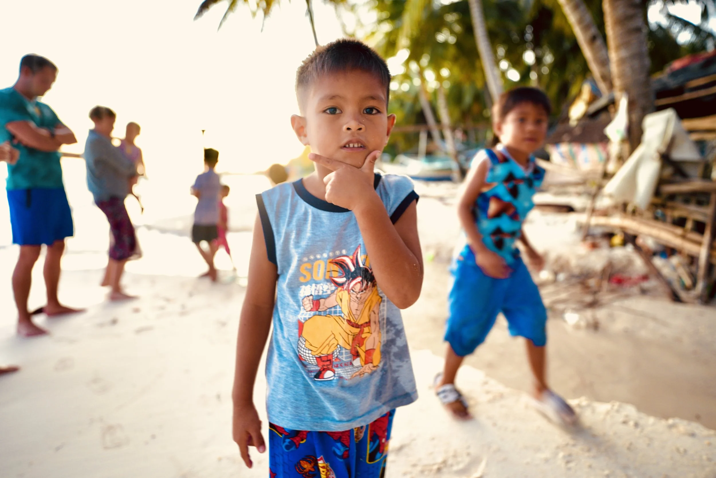 They gather around us, curious but never shy. One boy strikes a pose, chin lifted to the sun, his smile a challenge and an invitation. No words needed — just the quiet understanding that a camera, for this one instant, can make a small island feel infinite.