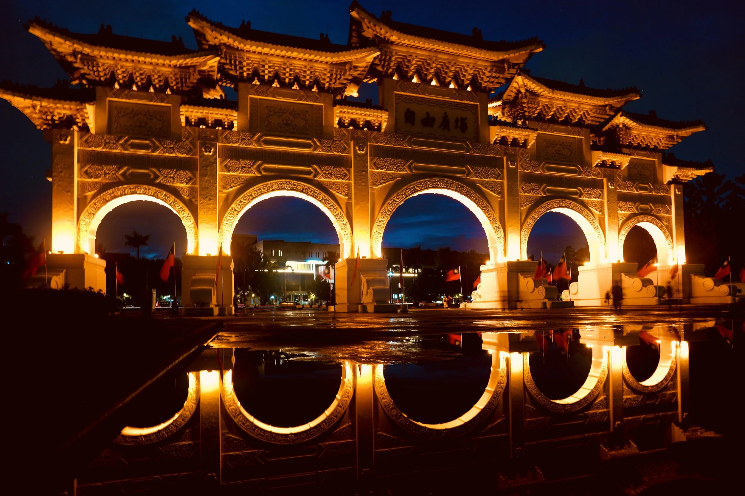 For grandeur, nothing compared to Liberty Square after dark. The National Concert Hall and Chiang Kai-shek Memorial Hall glowed softly in the night, their traditional roofs illuminated against the sky.