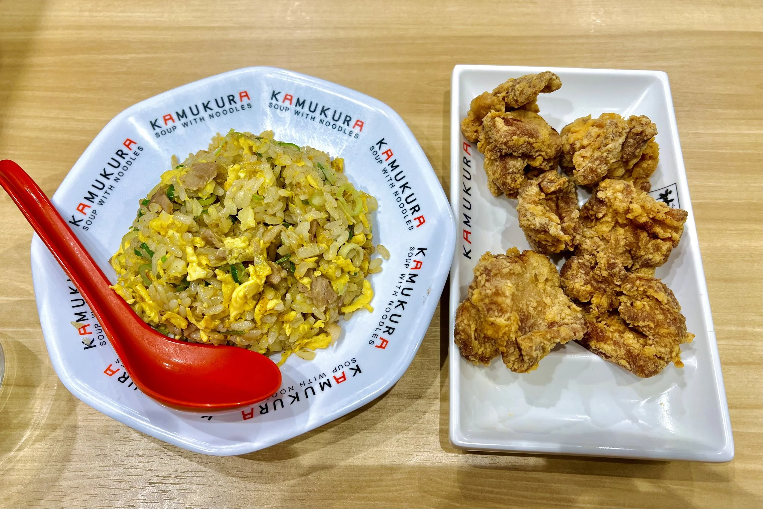 The fried rice was textbook: separated grains, egg distributed evenly, pork restrained. Karaage crisped at the edges.
