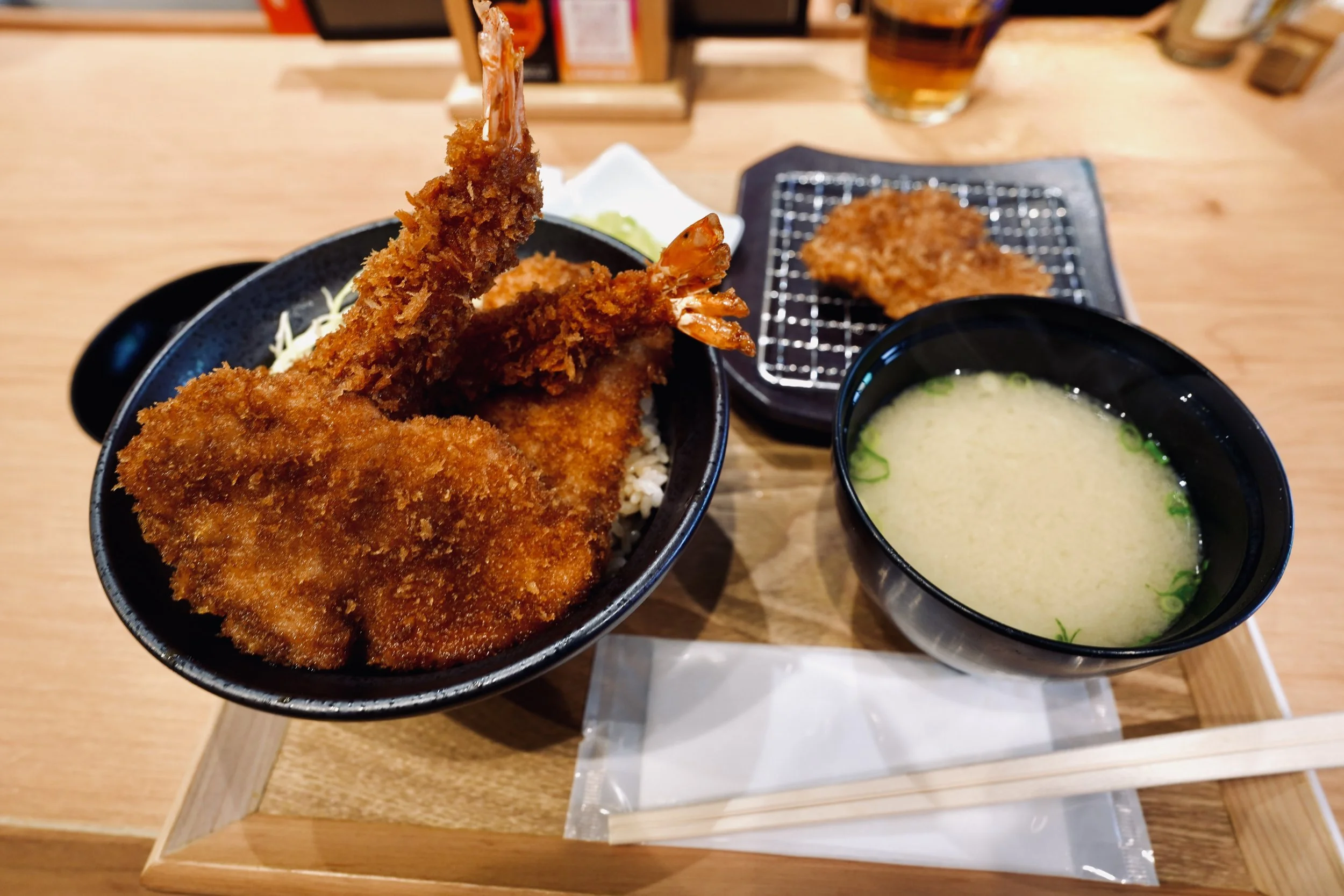 Golden panko, audibly crisp. Pork cut thick. Rice steamed to textbook gloss. A bowl of miso at precisely the right temperature — hot enough to bloom, not scald.