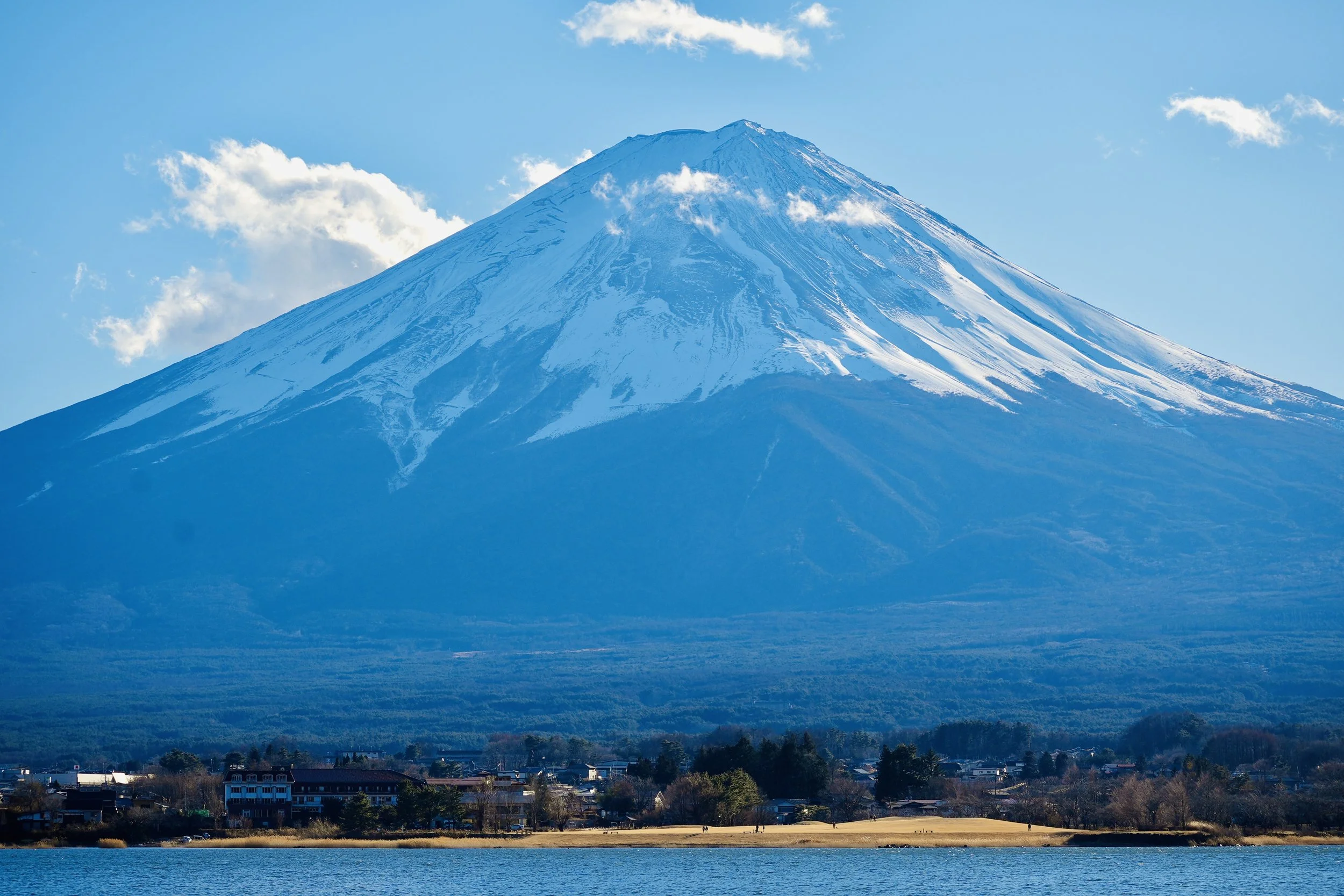 Lake Kawaguchi is one of the Fuji Five Lakes, formed by ancient lava flows from earlier eruptions. It spans just 5.7 square kilometers. By comparison, Lake Tahoe in California is over 490 square kilometers — nearly 86 times larger.