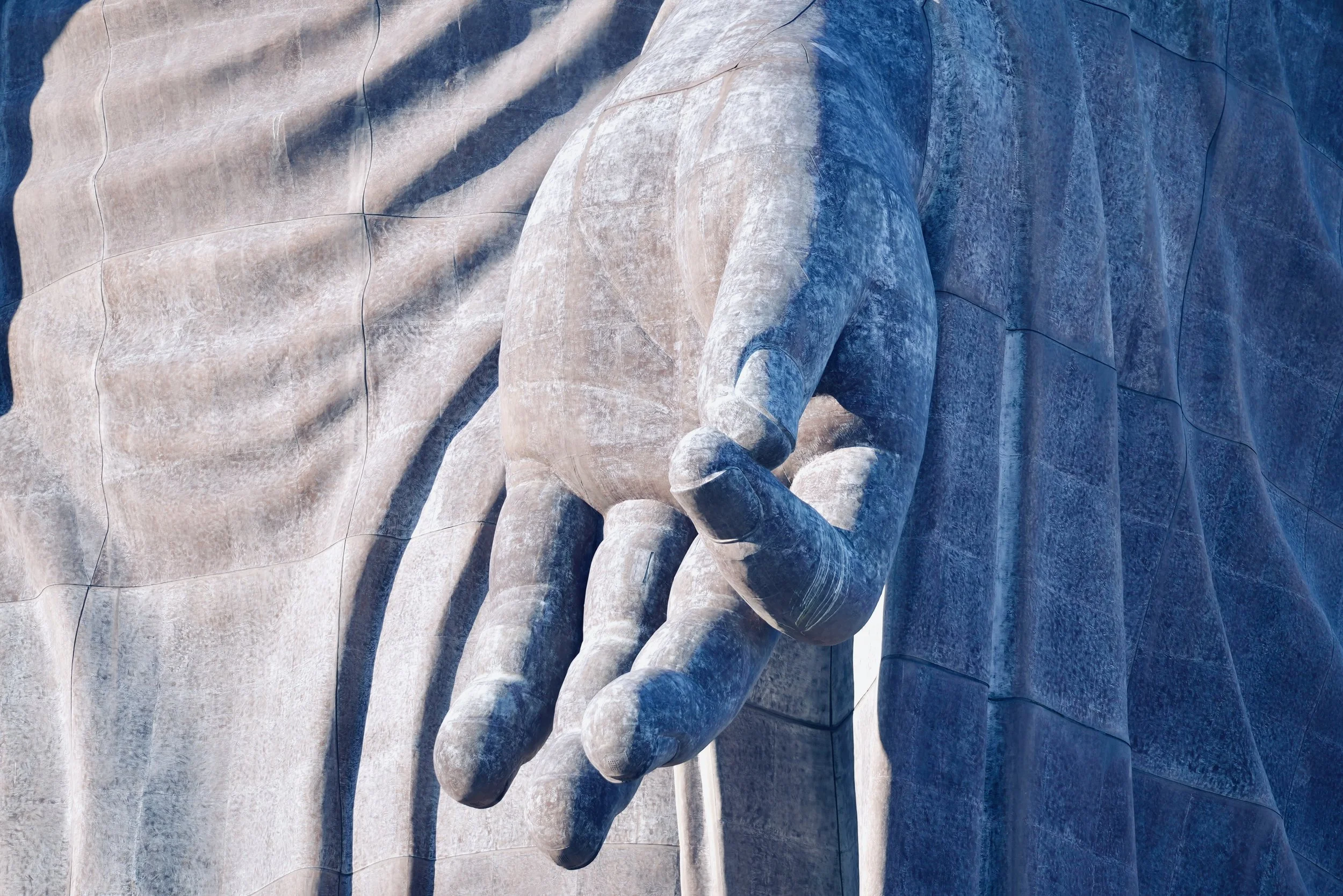 The hem of the robe becomes architectural. The folds resemble terrain. The face — serene, impassive — sits higher than most buildings in central Tokyo.